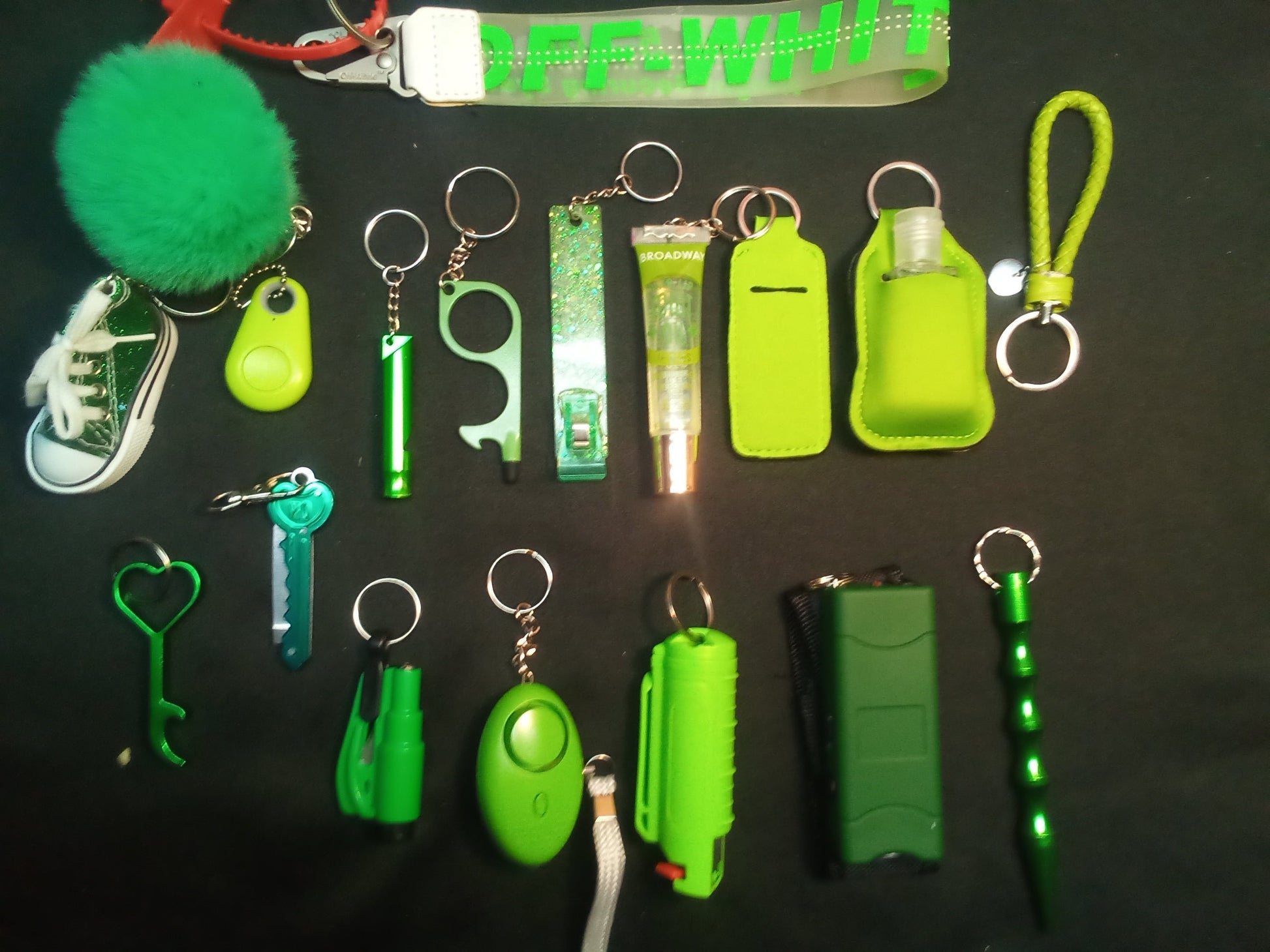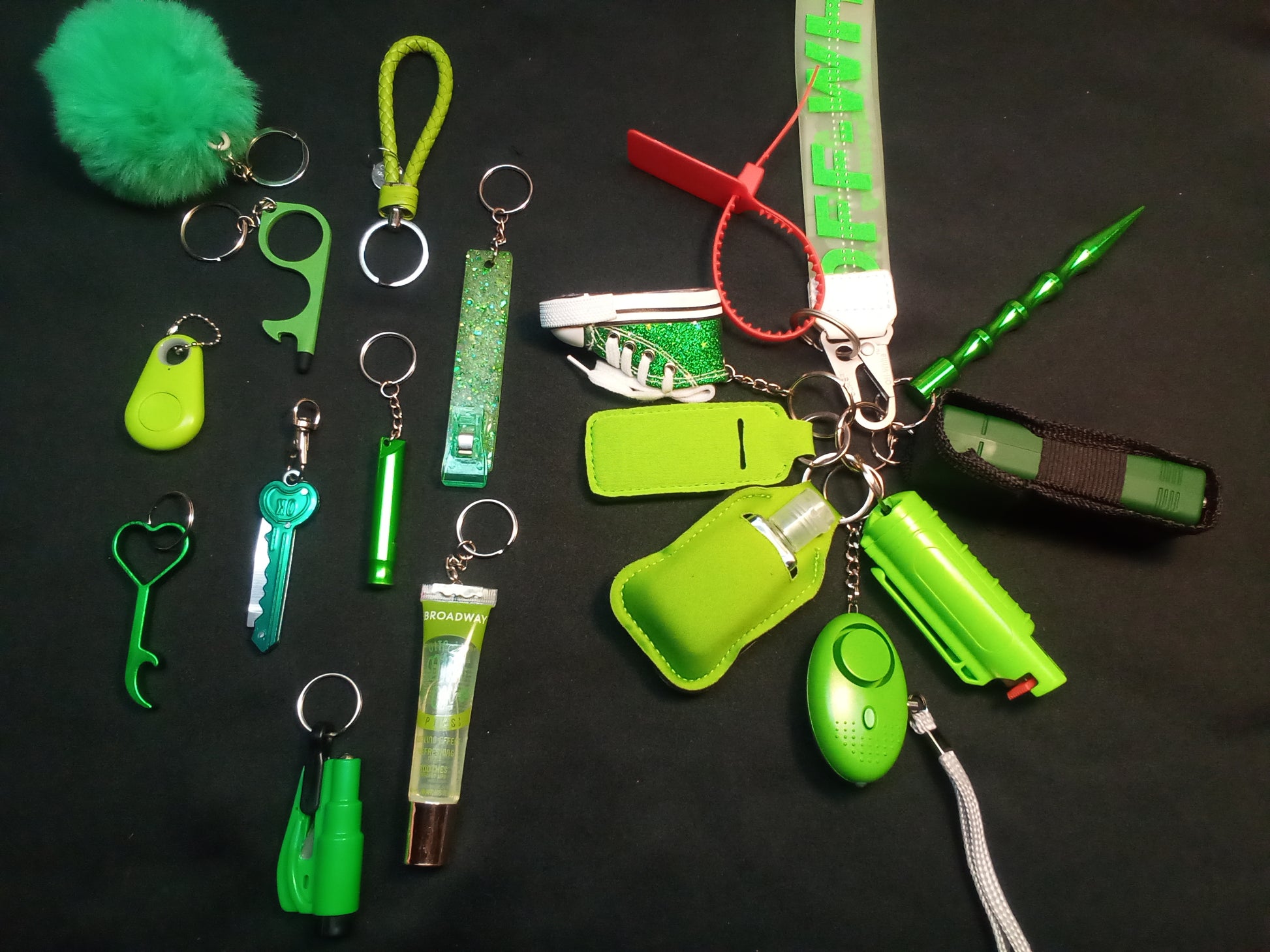 18-piece Hulk Green Color Safety Keychain Bundle comes with: